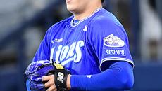 미소짓는 원태인 ‘안 잡아주네’ [MK포토]