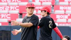 [수원=스포츠조선 김민경 기자] "와 레전드다." 이강철 kt 위즈 감독이 20일 수원 KIA 타이거즈전에 앞서 취재진과 대화- 2025-05-20 16:55