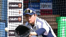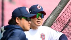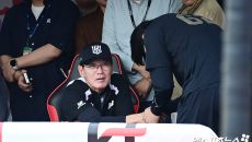 [사진]훈련 지켜보는 이승엽 감독-박석민 코치