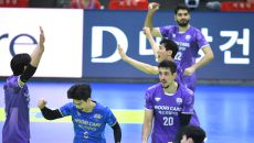 [포토] 승리 후 환호하는 우리카드 선수들