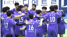우리카드 선수들이 10일 수원체육관에서 열린 2025~2026 V-리그 한국전력과 경기 승리 후 환호하고 있다. 2025. 1- 2025-12-10 21:04
