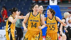 [사진] 동점 하이파이브하는 청주 KB스타즈 선수들