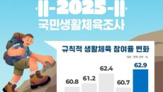 2025년 국민 생활체육 참여율 62.9%…전년 대비 2.2%포인트 상승