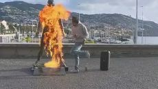 '대충격' 호날두 동상이 불탔다! '신의 경고'→광란의 춤…포르투갈 경찰, 용의자 추적