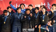 [포토S] 선수들과 우승 기쁨 나누는 중앙대 오해종 감독