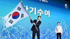 22일 잠실 올림픽파크텔에서 '2026밀라노코르티나 동계올림픽' 출전 대한민국 선수단 결단식이 열렸다. 단기 태극기를 흔들고- 23시간전