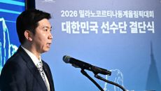 22일 잠실 올림픽파크텔에서 '2026밀라노코르티나 동계올림픽' 출전 대한민국 선수단 결단식이 열렸다. 인사말하는 대한체육회- 23시간전