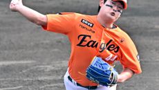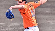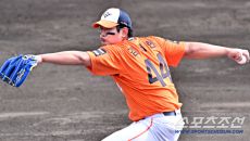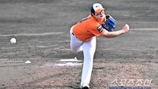 22일 일본 오키나와 니시자키 야구장에서 열린 한화 이글스와 지바 롯데의 연습경기. 한화 김서현이 역투하고 있다. 오키나와(일- 9시간전