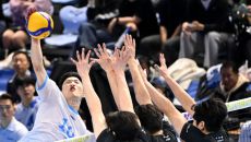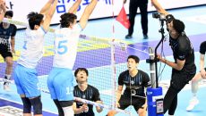 22일 인천 계양체육관에서 열린 V리그 남자부 대한항공과 현대캐피탈의 경기, 대한항공 러셀과 김규민이 현대캐피탈 레오의 공격을- 11시간전