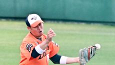 22일 일본 오키나와 니시자키 야구장에서 열린 한화 이글스와 지바 롯데의 연습경기. 지바 롯데 우에다 타구를 처리하는 과정에서- 11시간전
