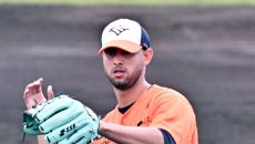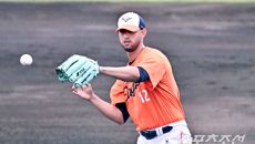 22일 일본 오키나와 니시자키 야구장에서 열린 한화 이글스와 지바 롯데의 연습경기. 지바 롯데 타나카가 하고 있다. 오키나와(- 15시간전