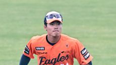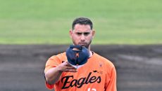 22일 일본 오키나와 니시자키 야구장에서 열린 한화 이글스와 지바 롯데의 연습경기. 한화 에르난데스가 숨을 고르고 있다. 오키- 15시간전