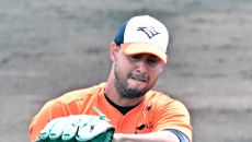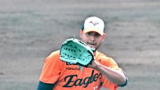 22일 일본 오키나와 니시자키 야구장에서 열린 한화 이글스와 지바 롯데의 연습경기. 한화 에르난데스가 숨을 고르고 있다. 오키- 15시간전
