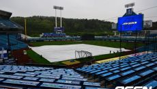 [사진]대구삼성라이온즈파크, 굵어지는 빗방울에 방수포 작업