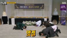 [스포티비뉴스=배선영 기자] 유재석이 지석진의 환갑을 맞이해 큰 절을 올렸다. 22일 오후 방송된 SBS 예능 프로그램 '런닝- 14분전