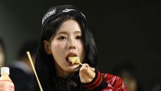 [포토S] (여자)아이들 미연, 어묵 먹으며 야구 관람