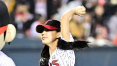 [사진](여자)아이들 미연, '복근 뽐내며 준플레이오프 5차전 시구'