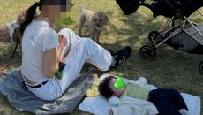 최자 아내, 생후 4개월 딸과 피크닉..남다른 발육 '귀여워'