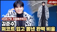 김준수, 퍼코트 입고 뽐낸 완벽 비율 '러블리 볼하트'··· 2026 FW 서울패션위크