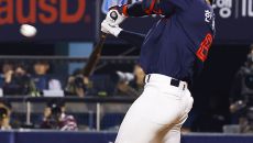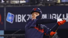 [ST포토] 윤동희, 힘차게 돌렸지만!