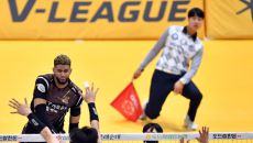 OK 오기노 감독이 6일 의정부체육관에서 열린 2023 도드람 V리그 남자부 KB손해보험과 OK금융그룹과의 경기에서 선수들을- 2023-12-06 20:08
