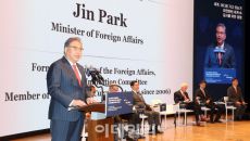 [포토]2023 NEAR 글로벌 서베이 보고서 발표 국제콘퍼런스에서 축사하는 박진 장관