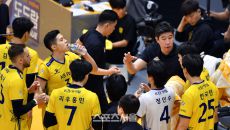 KB 후인정 감독이 6일 의정부체육관에서 열린 2023 도드람 V리그 남자부 KB손해보험과 OK금융그룹과의 경기에서 선수들에- 2023-12-06 20:00