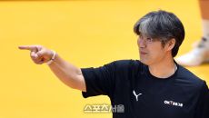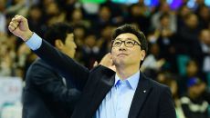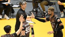 OK 오기노 감독이 6일 의정부체육관에서 열린 2023 도드람 V리그 남자부 KB손해보험과 OK금융그룹과의 경기에서 선수들에- 2023-12-06 19:58
