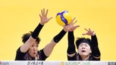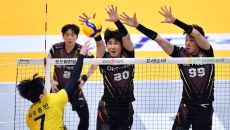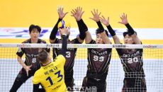 KB 비예나가 6일 의정부체육관에서 열린 2023 도드람 V리그 남자부 KB손해보험과 OK금융그룹과의 경기에서 OK 삼중블로킹- 2023-12-06 19:58