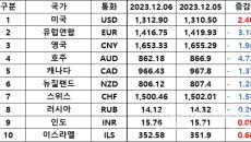 12월 06일 환율 정보 … 미국 달러 환율 1,312.9원, 유럽환율 1,416.75원