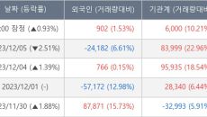 [서울=뉴스핌] 로보뉴스 = 06일 10시 15분 현재 비에이치(090460)는 외국인과 기관이 각각 0.09 만 주, 0.6- 2023-12-06 10:21