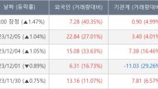 [장중수급포착] HLB글로벌, 외국인 6일 연속 순매수행진... 주가 +1.04%