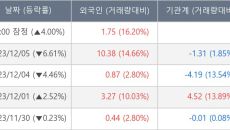 [서울=뉴스핌] 로보뉴스 = 06일 10시 15분 현재 엘앤에프(066970)는 전일 대비 3.64% (현재가 190,700원- 2023-12-06 10:19
