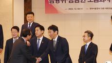보험회사 CEO들과 인사하는 김주현 위원장과 이복현 감독원장