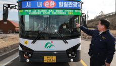 6일 정영철 충북 영동군수가 영동읍 시가지를 순환하는 전기 저상버스 운행을 점검하고 있다. 이달 운행을 시작한 버스는 영동역에- 2023-12-06 19:26