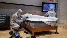 흰색 방제복으로 무장한 직원이 자외선 플래시를 켜고 침대 모서리, 매트리스, 다리 등을 구석구석 살핀다. 이후 고온의 스팀 분- 2023-12-06 07:30