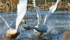 (강릉=연합뉴스) 유형재 기자 = 흔히 백조로 불리는 우아함의 대명사인 큰고니가 유에프씨(UFC) 선수처럼 먹이 공간 확보를- 2023-12-06 07:07