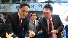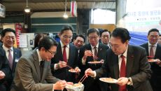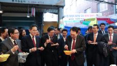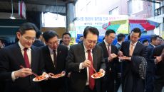 기업 총수들과 깡통시장 분식 시식하는 윤 대통령