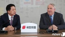 (서울=뉴스1) 송원영 기자 = 김기현 국민의힘 대표와 인요한 혁신위원장이 6일 서울 여의도 국회에서 열린 간담회에서 자리로- 2023-12-06 17:24