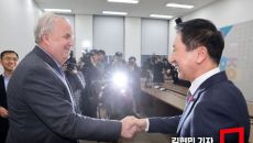 김기현 국민의힘 대표와 인요한 혁신위원장이 6일 국회에서 만나 악수하고 있다. 사진=김현민 기자 kimhyun81@ <ⓒ투자가- 2023-12-06 17:23
