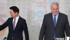 (서울=뉴스1) 송원영 기자 = 김기현 국민의힘 대표와 인요한 혁신위원장이 6일 서울 여의도 국회에서 열린 간담회에서 자리로- 2023-12-06 17:24