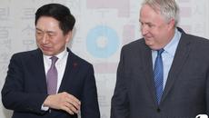 자리에 착석하는 김기현 대표와 인요한 혁신위원장