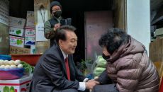 [서울=뉴스핌] 윤석열 대통령이 6일 부산 중구 깡통시장을 방문해 상인을 격려하고 있다. [사진=대통령실] 2023.12.06- 2023-12-06 17:15