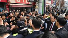 [서울=뉴스핌] 윤석열 대통령이 6일 부산 중구 깡통시장을 방문해 시민들의 환호에 주먹을 들어보이며 화답하고 있다. [사진=대- 2023-12-06 17:15