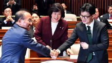 한동훈 법무부 장관과 윤재옥 원내대표 악수