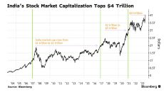인도증시, 사상 첫 시총 4조 달러 돌파…홍콩 맹추격