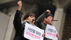 [포토] ‘피노키오 코’ 달고 모인 문화예술인들 “유인촌 탄핵”