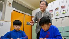 돌봄교실 아이들 바라보는 이재명 대표