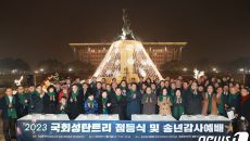 (서울=뉴스1) 송원영 기자 = 김진표 국회의장이 6일 서울 여의도 국회에서 열린 국회성탄트리 점등식에서 참석자들과 기념 촬영- 2023-12-06 21:33