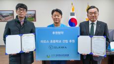 이대영 한국청소년진흥협회 이사장과 강형식 본퍼니쳐 대표가 6일 경기도 파주시 한국교과서협회에서 라오스 초등학교 건립으로 창의적- 2023-12-06 15:17